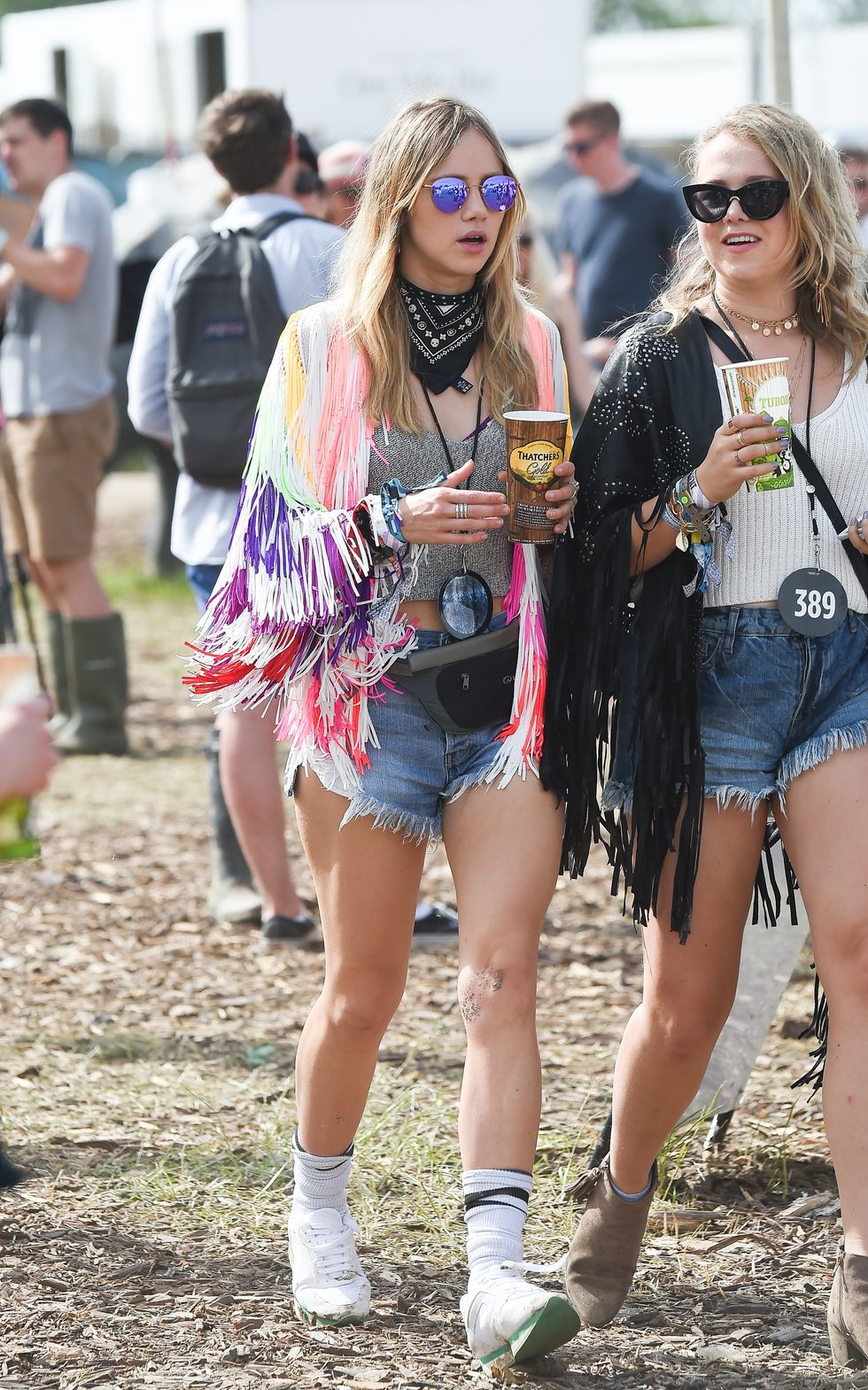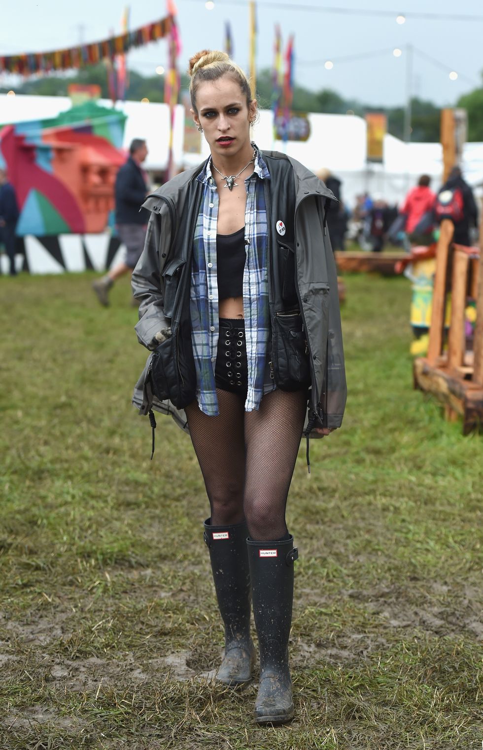 Alice Dellal at Glastonbury Festival in 2016 wearing a look that can only be described as peak Tumblr girl.