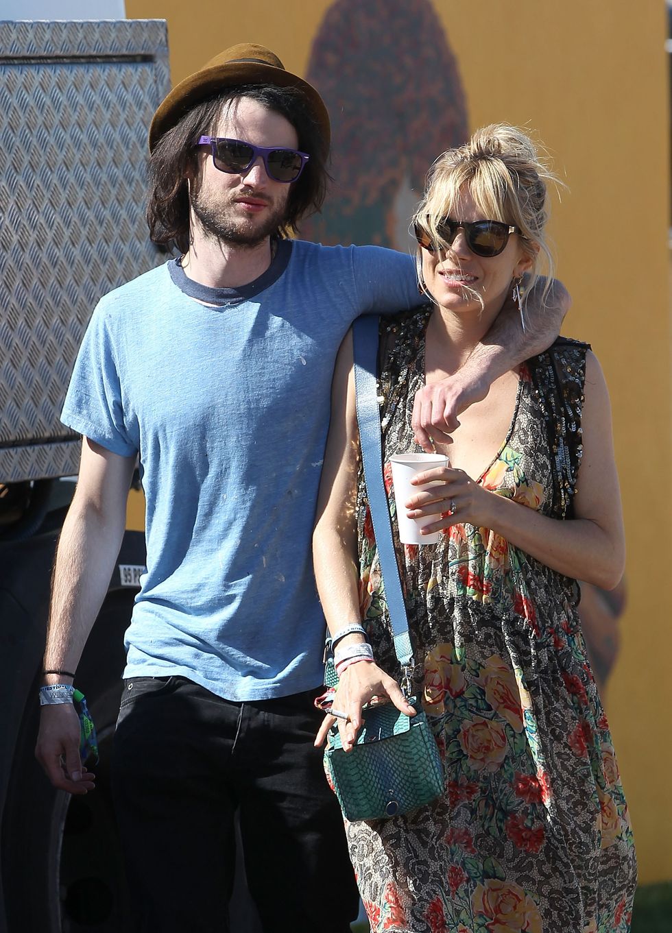 Sienna Miller and Tom Sturridge in 2013. Miller is one of the reigning style queens of Glastonbury, and this floral tea dress makes perfect sense for the British actor.