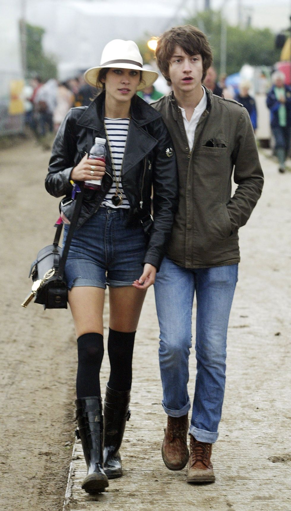 Alexa Chung and Alex Turner at Glastonbury in 2008. Chung canonized the denim short at the festival, with this image of her and Arctic Monkey’s frontman and boyfriend, Turner, going viral on Tumblr years later.