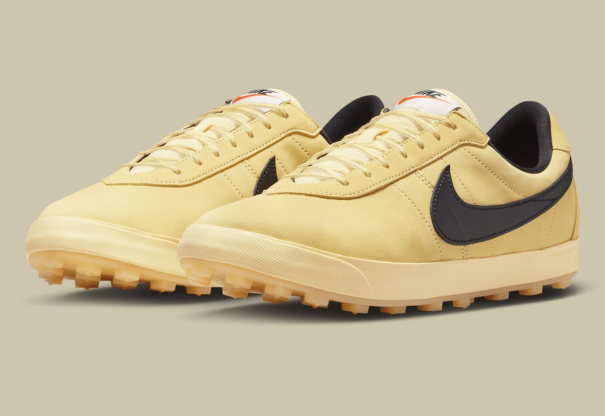 The upper is finished in a muted colorway of Soft Yellow with a solid black Swoosh on both the lateral and medial sides of the shoe. Orange tongue tag provides a vintage-inspired touch and reminds the wearer of the Astrograbber’s 1970s heritage. The NIKE logo adorns the heel of the shoe. For a little variety, Nike throws in a second set of laces.