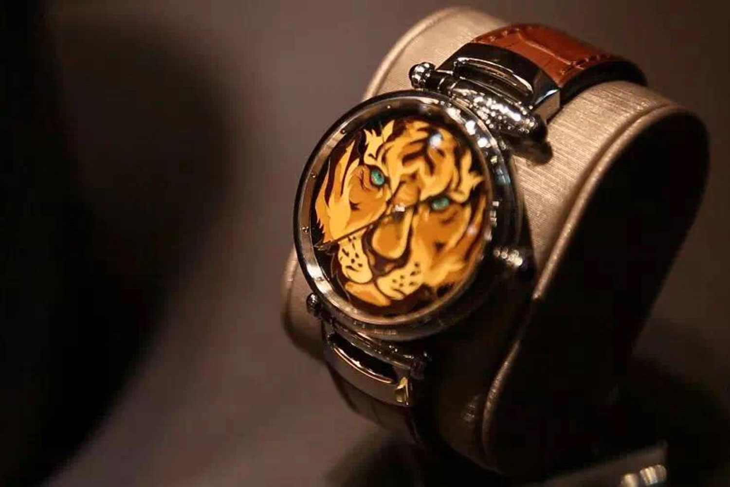 Using both gold and silver wire, Xiong’s cloisonné work has been showcased in commissions from major brands, including Butterflies in Love with Flowers by Beijing Watch and the Shenzhou series by Fiyta. Miniature enamel painting is another specialty. For his own wedding, Xiong even commissioned a pair of watches from Beijing Watch and personally painted the dials as gifts for himself and his wife.