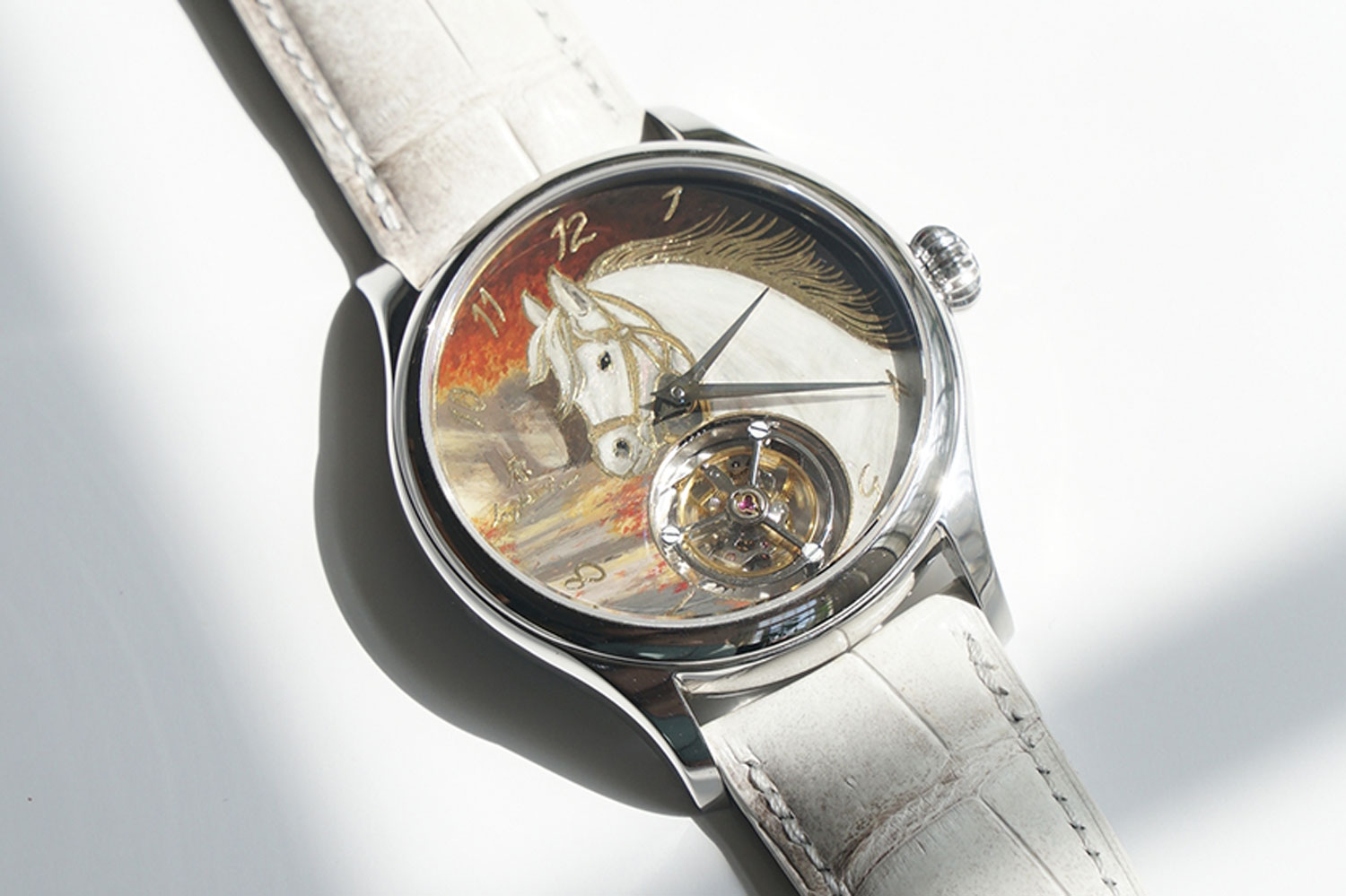 A tourbillon wristwatch with a horse enamel painting. (Image: Ctime)