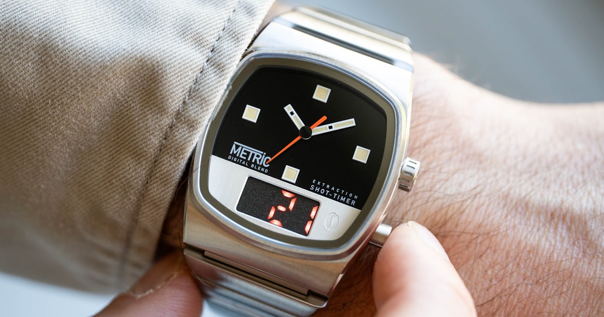 Brew is no stranger to presenting fun, unique designs, but this new one might just be the weirdest yet. It’s the new Metric Digital Blend Watch, offering both an analog dial as well as a digital LED screen at the bottom of the dial for timing an espresso. While many Brew watches have offered espresso-specific markings, this new Ana-Digi design is even more precise when it comes to timing your next shot.