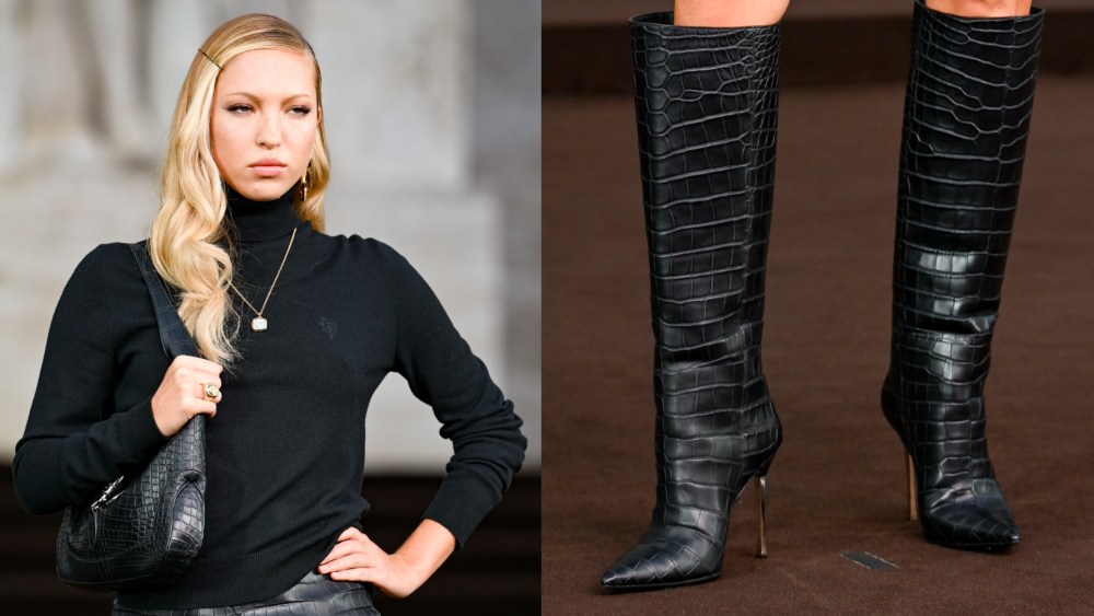 She wore black boots with silver accents in Milan.