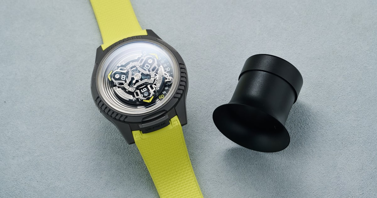 It comes on either a ballistic-textured yellow rubber strap or a black integrated rubber strap, both with a titanium deployant. Production is limited to 100 pieces. The UR-Freak retails for $122,200.