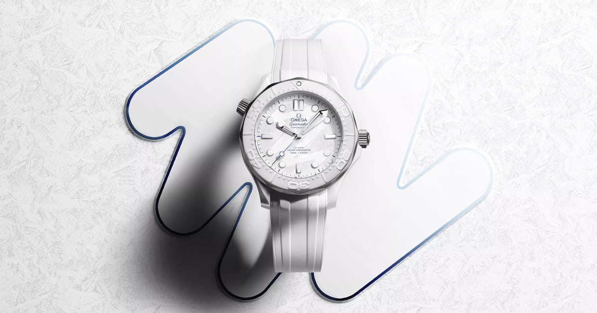 The edition takes the form of Omega’s ceramic-and-titanium diver, this time rendered in white ceramic for a bright, frosty look. While the silhouette will be familiar to anyone who knows the Seamaster 300M, the ceramic-and-titanium variants are slightly upsized, measuring 43.5mm in diameter and 14.37mm thick.