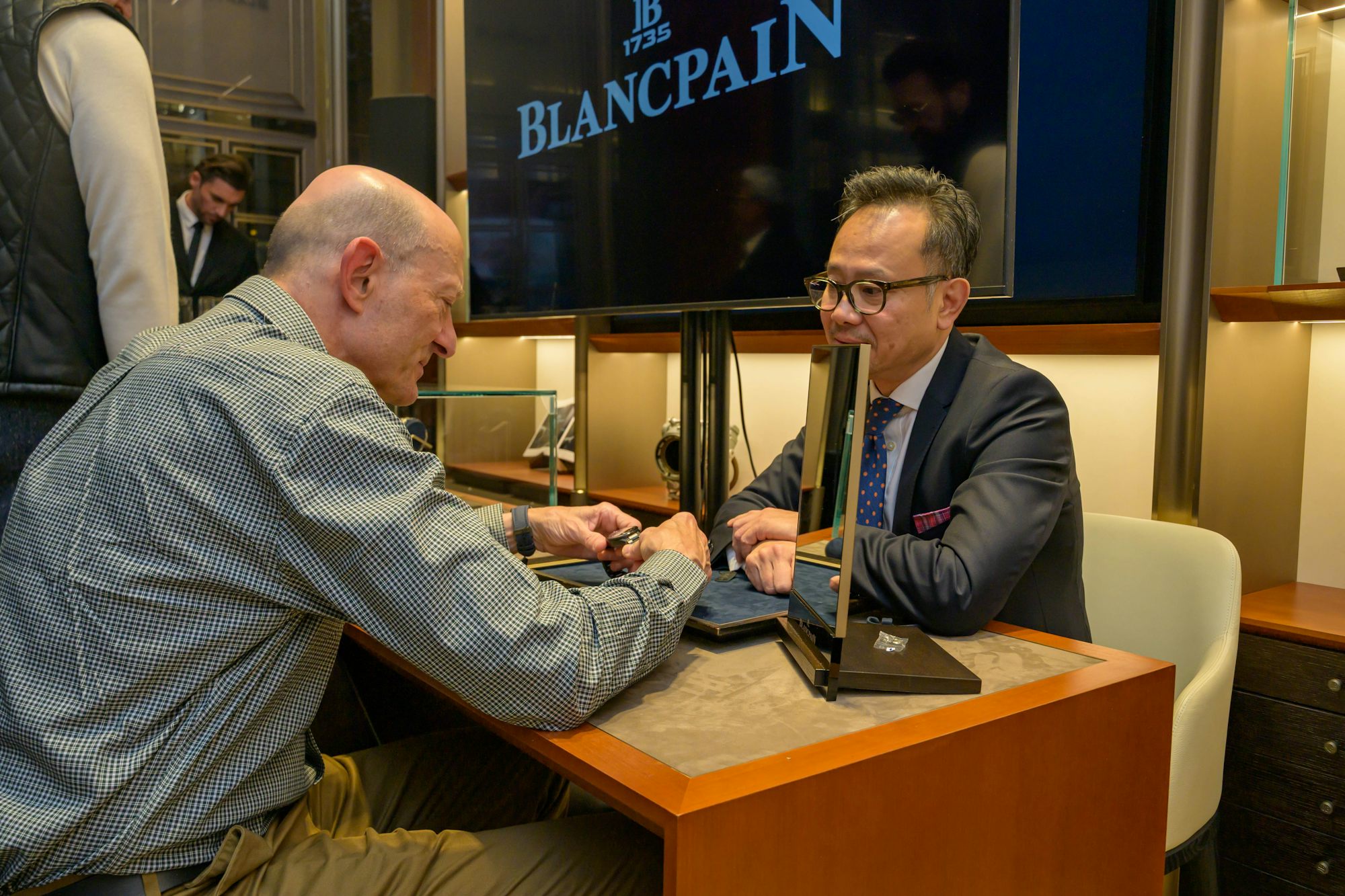 Following the conversation was an opportunity to experience a selection of Blancpain’s rarest high-complications in the metal, underscoring the brand’s wide-ranging achievements in haute horlogerie, from minute-repeaters to tourbillons to jumping hours. Accompanied by cocktails and a preview of the Villeret Golden Hour series, it made for the perfect way to appreciate Blancpain’s long heritage of watchmaking excellence.